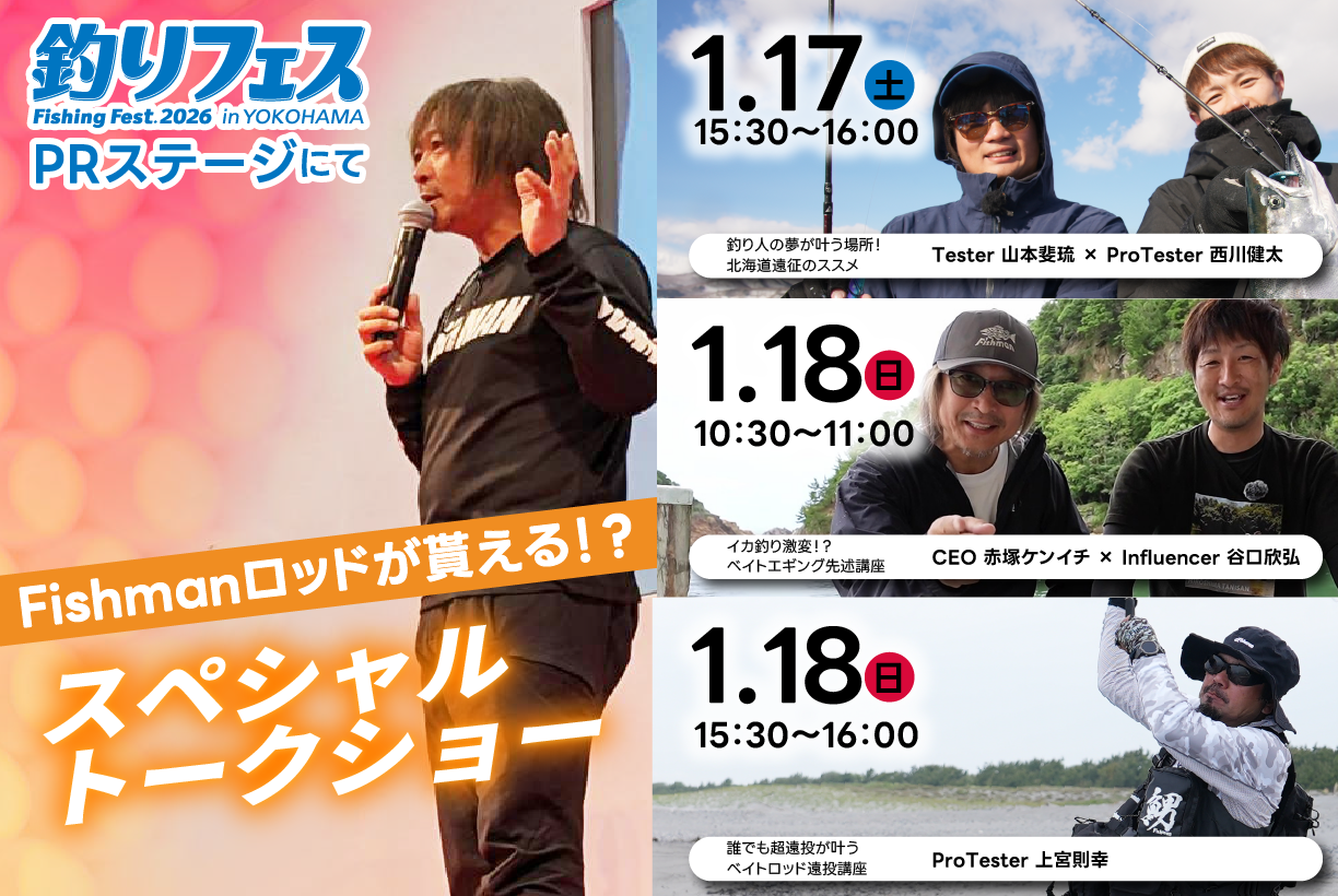 2023年発売ロッド『Beams blancsierra4.8UL LIMITED(ビームスブランシエラ)』『Beams RIPLOUT9.0M+(ビームスリプラウト)』『BRIST HYDRO8.5XXH(ブリストハイドロ)』の3機種を含んだFishmanロッド全34機種を一挙に展示!