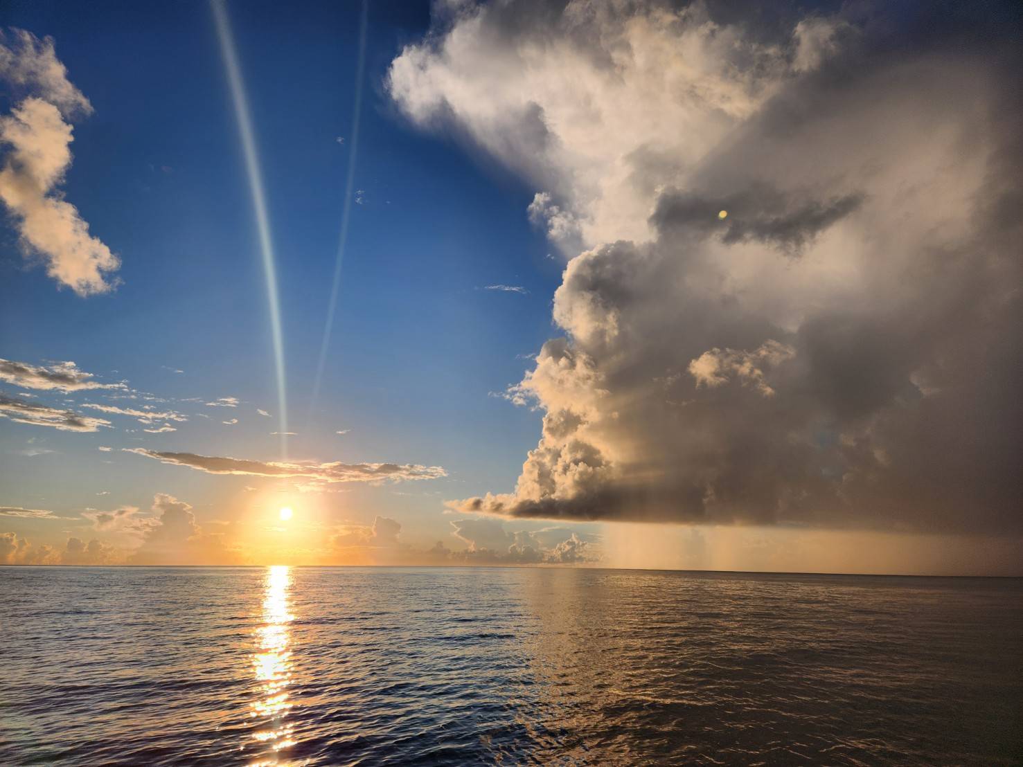 出港するとサンセットとスコールの幻想的な景色がお出迎え。
