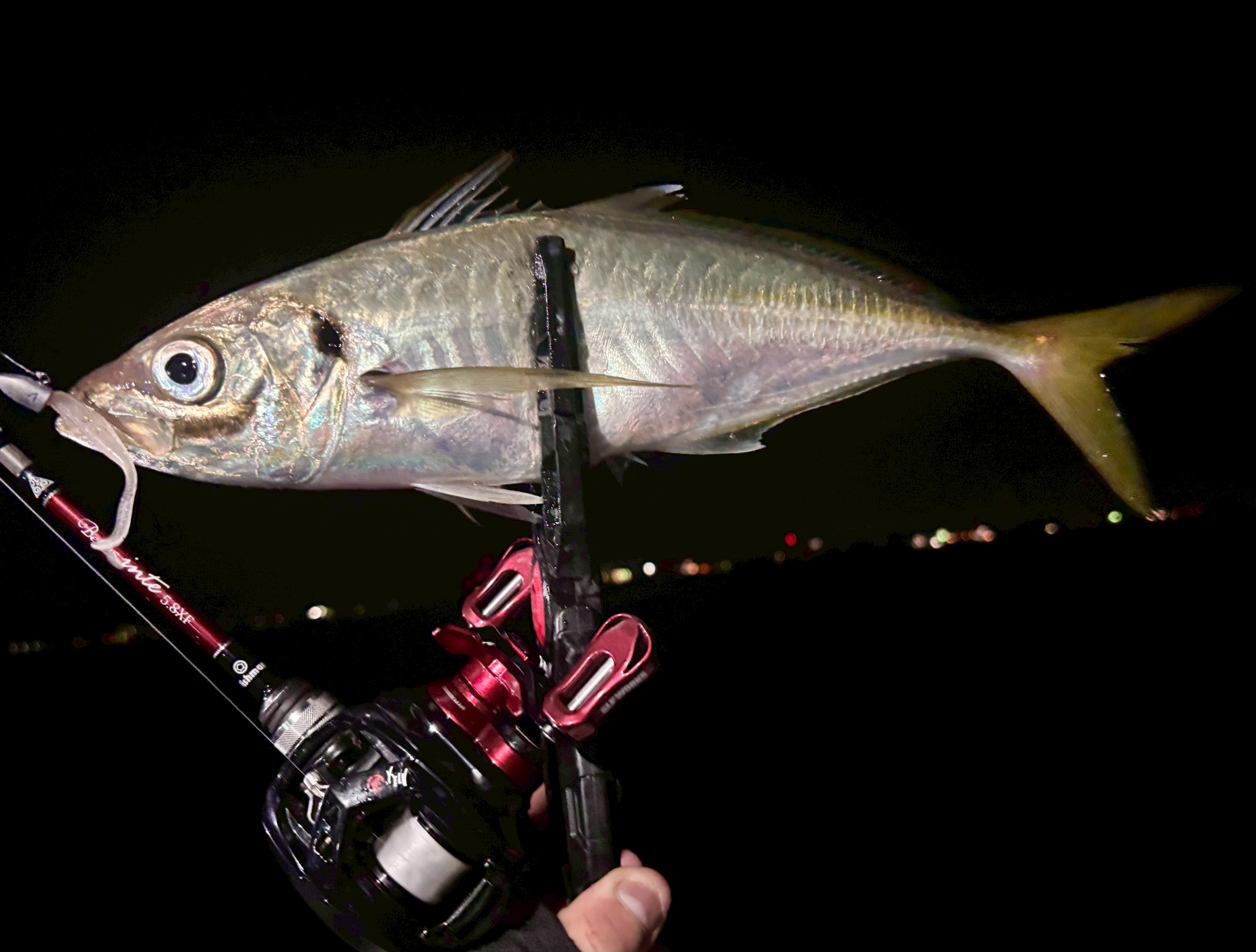 Fishmanロッドの中で最も繊細なロッドでありながら、このサイズのアジの引きにも負けない、Fishmanロッドらしい強さもある。