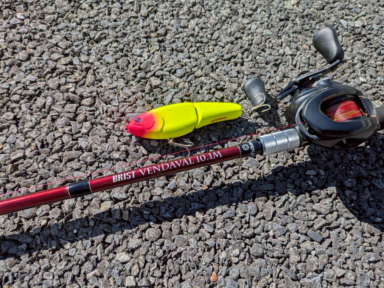 皆さんご存知の通り、ベンダバール10.1Mは外側に高弾性カーボンが巻かれていて、適度なハリと感度があり、10フィート台のロングロッドでありながらも、繊細なショートバイトがわかりやすいです。