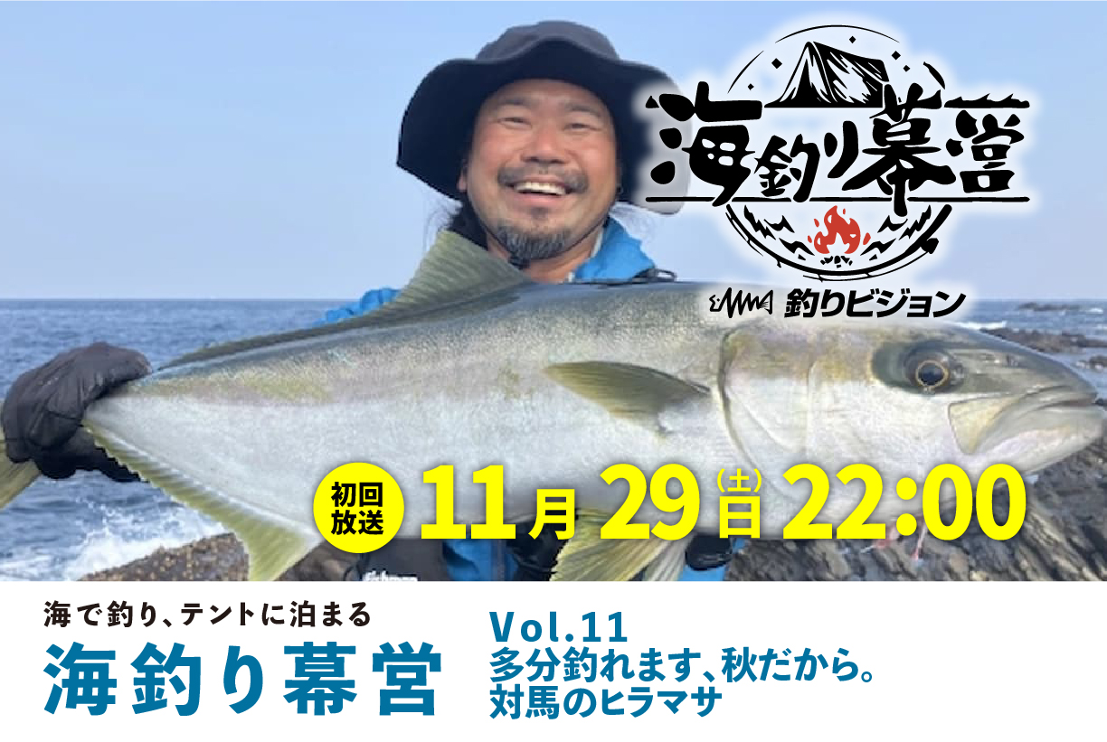 【11月29日(土)22:00 初回放送】釣りビジョン『海釣り幕営』 11多分釣れます、秋だから。対馬のヒラマサ